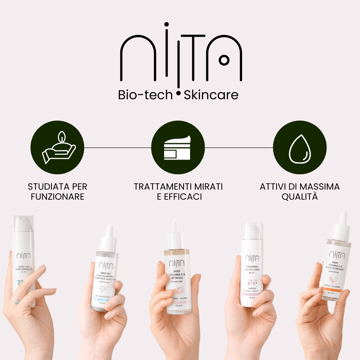 I nostri prodotti sono il risultato di un’accurata ricerca cosmetica, per agire in sinergia con la pelle e rispondere alle sue esigenze in modo intensivo garantendo risultati istantanei, visibili e duraturi.